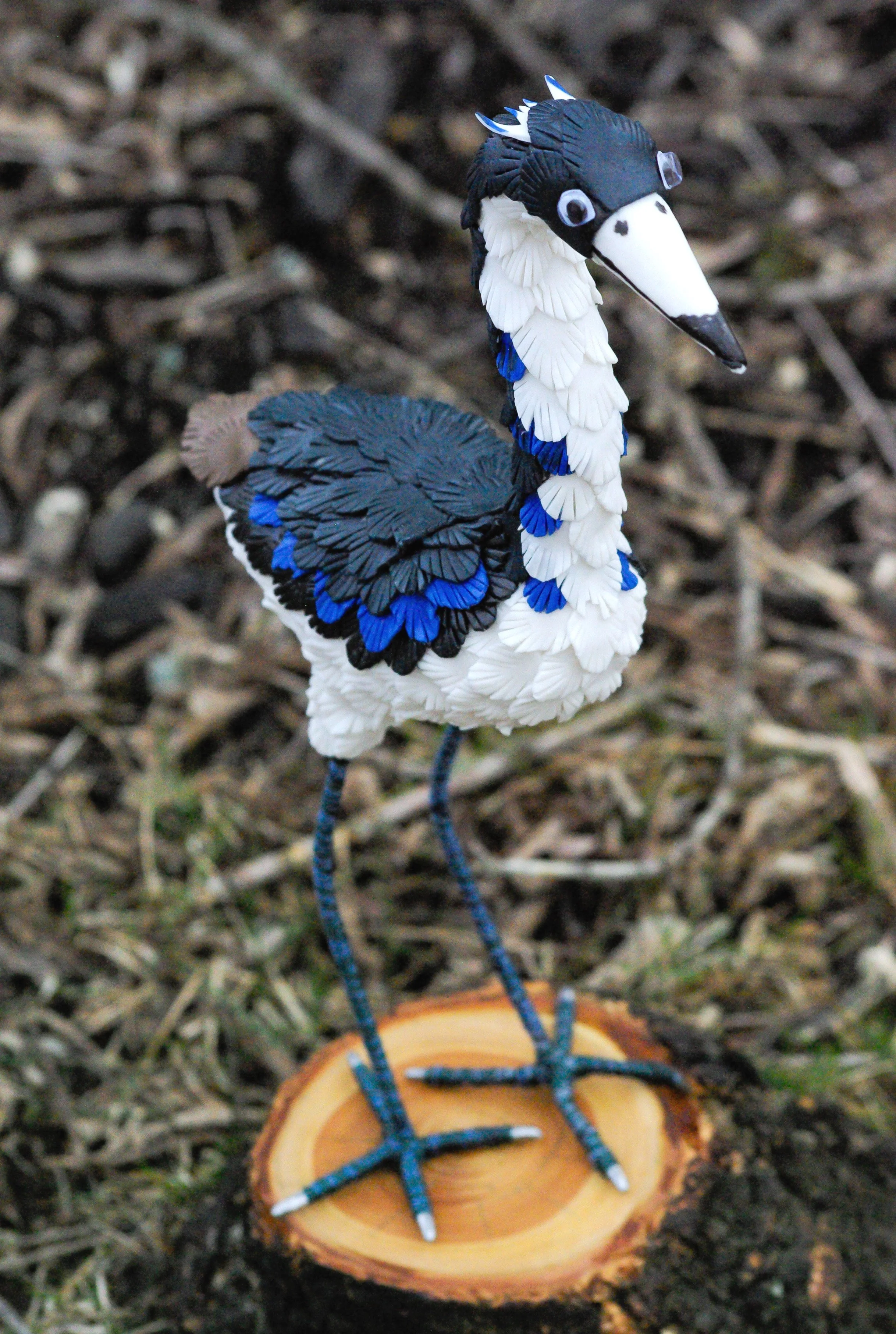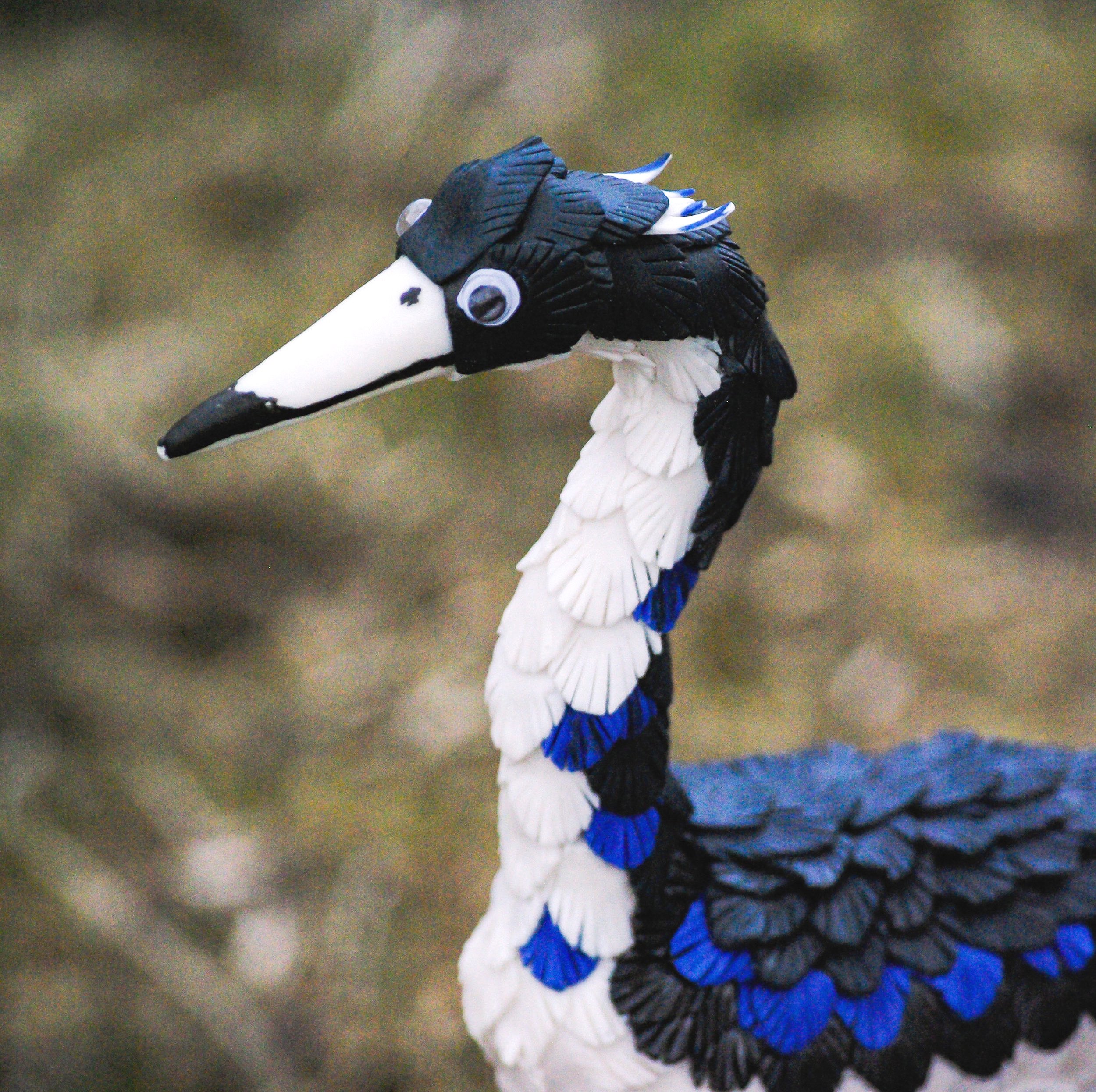 Héron Paquet, porcelain, steel, wood and string. 2024